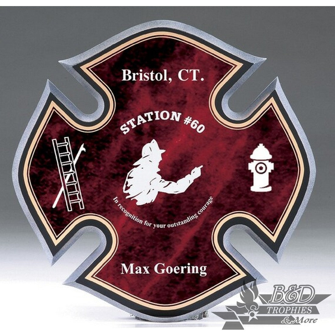Maltese Cross comes with full back hanging device so your engraving stays bright white no matter what background you hang the plaque on. Includes 1st six lines of engraving. Add a logo/design for $6.00.